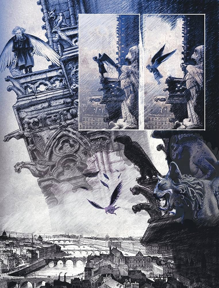 Já Bernard Hislaireo (Yslaire) artista belga e autor deste “Menina Boudelire” (no original “Madmoiselle Boudelaire”), já me tinha chamado a atenção com a sua coleção “Sambre”, sobretudo pela sua arte muito livre e recheada de técnicas diversas de desenho e pintura, que apreciei de passagem em algumas livrarias, mas que também ainda não tinha na minha biblioteca.